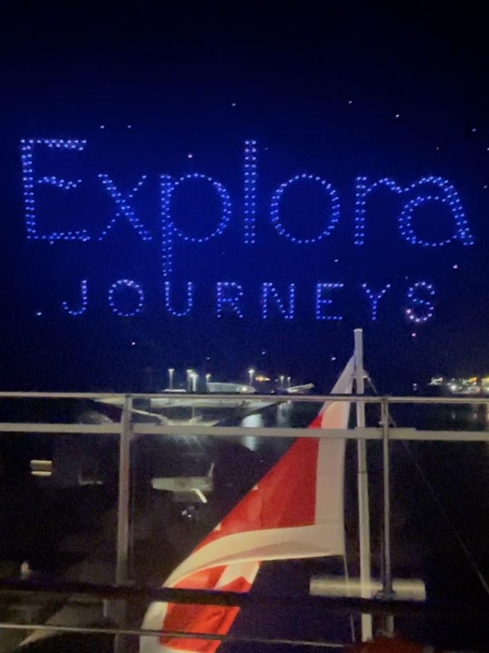 The ceremony reached breathtaking new heights with a state‑of‑the‑art drone show, filling the Italian sky with luminous, choreographed imagery of the EXPLORA Journeys brand. Set against a star‑filled backdrop, the synchronized lights celebrated not only EXPLORA II but also the sense of exploration, connection, and all‑inclusive adventure awaiting every guest.